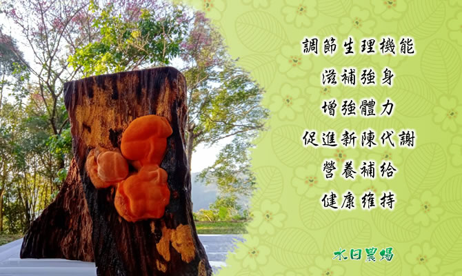 牛樟芝又名牛樟菇,為台灣特有種,屬於多孔菌目多孔菌科薄孔菌屬的多年生蕈菌類,其氣味芬芳,味辛且苦,食用後會有回甘感;其子實體有強烈的樟香氣,主要寄生在台灣海拔500公尺以上特有的牛樟樹上。本農場所生產之牛樟芝是以人工牛樟椴木培育子實體的方式進行,且培育環境在海拔500公尺以上,因此品質較佳。